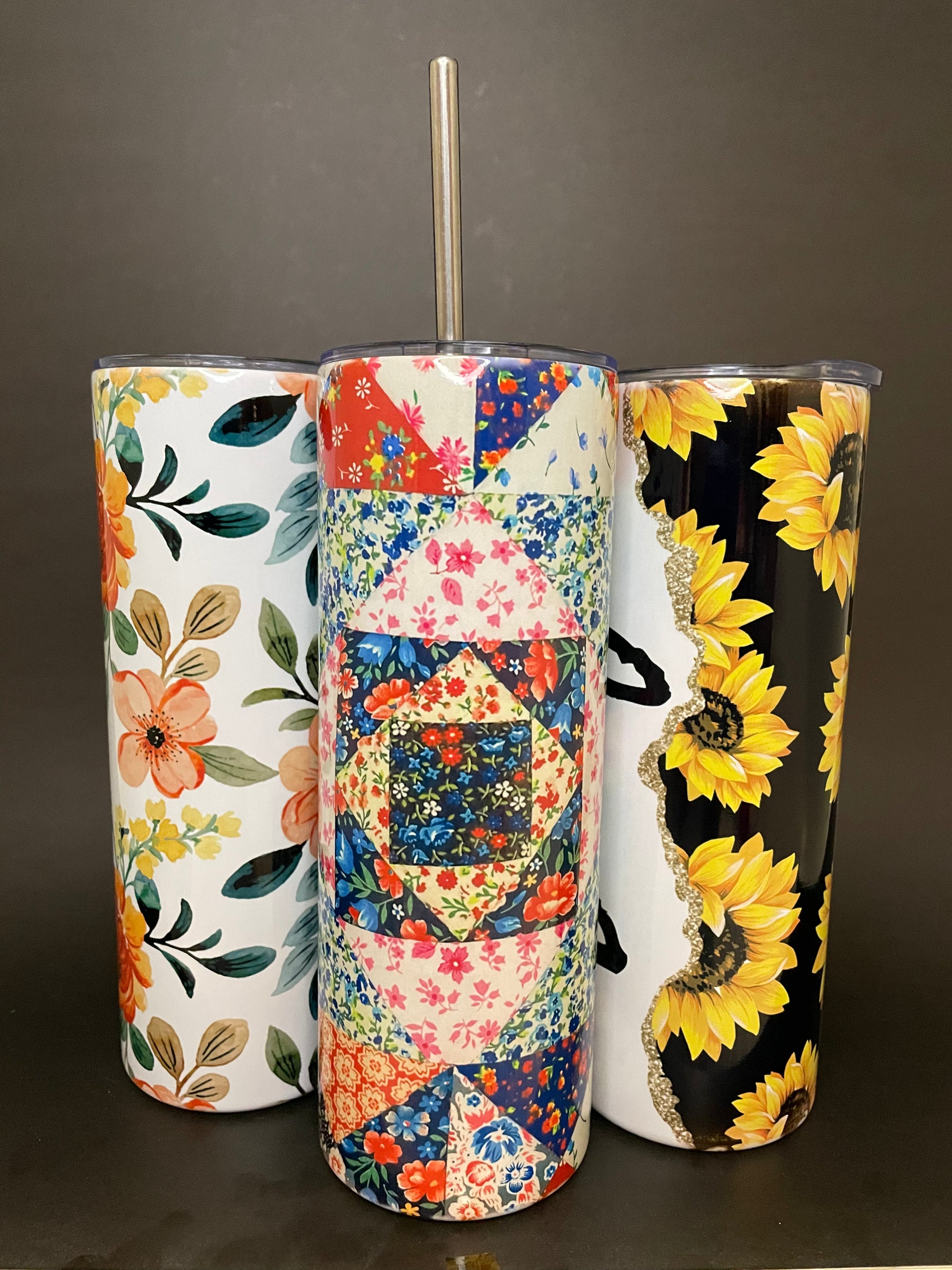 Stainless steel straight tumbler sublimated with a permanent inked design. Comes with a stainless steel straw as well as a non-skid rubber grip on the bottom of the tumbler.